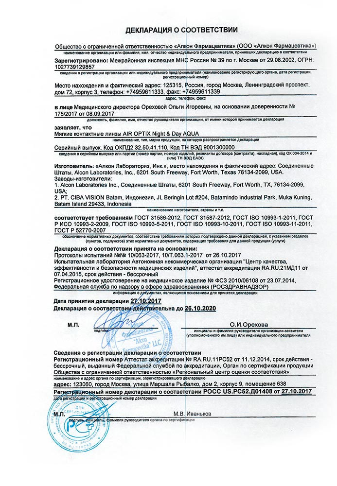 Air Optix Night & Day Aqua 3 линзы